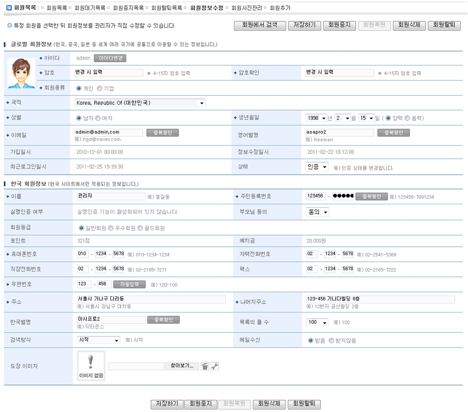 HOME > 호스팅 > 아사프로2.0 > 회원관리 > 회원목록 |