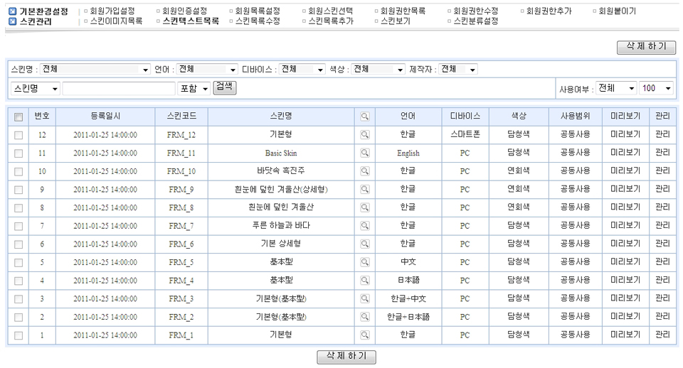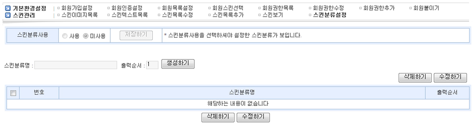 | (2) 관리자의 경우 스킨분류설정은 미사용입니다. |