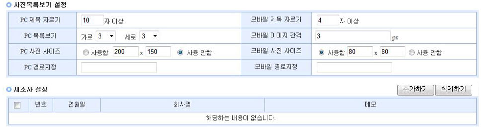 | (3) 사진의 제조사를 등록하여 사진 등록시 선택할 수 있게 할 수 있습니다. |