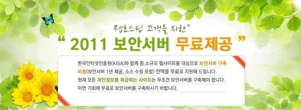 | 2. 신청서류 : 보안서버 신청서(다운받아 사용), 사업자등록증 사본 1부(이미 제출한 경우 생략) |