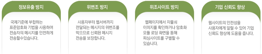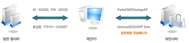 인터넷상에서 개인정보를 송수신하는 대표적인 예로는 로그인을 위한 ID/PW 입력 및 웹사이트 회원가입 시 개인정보를 입력하는 것이있는데, 이때 웹서버에 보안서버 솔루션이 설치되어 있으면 개인정보가 암호화 되어 타인에게 노출되지 않으며,정보를 안전하게 전송할수 있습니다. |
